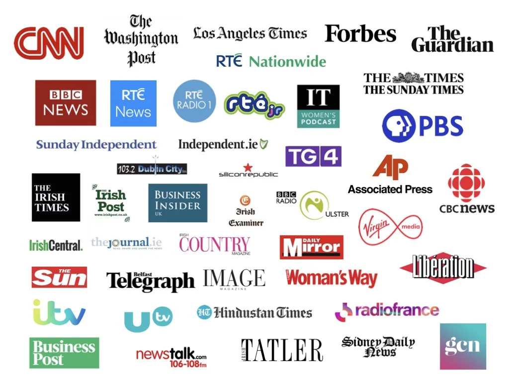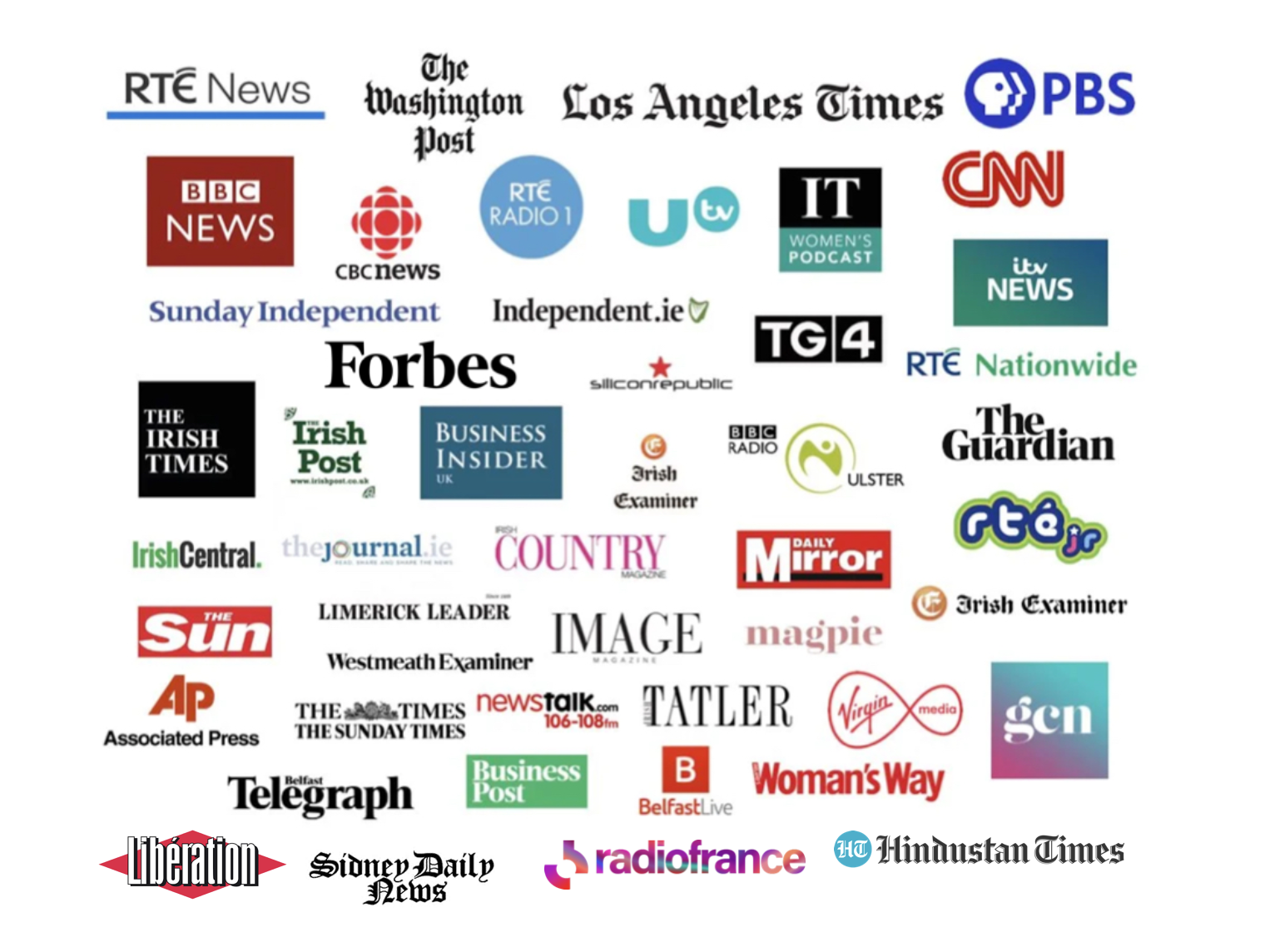 From grassroots community engagement to platforming causes on the world stage, her work has been showcased at the United Nations, Council of Europe, US Congress, Brazil Congress, Irish Parliament, President of Ireland’s residence, IMMA, and Irish Embassies. Media features include the Los Angeles Times, FORBES, Washington Post, CNN, BBC, The Guardian, and all Irish media.